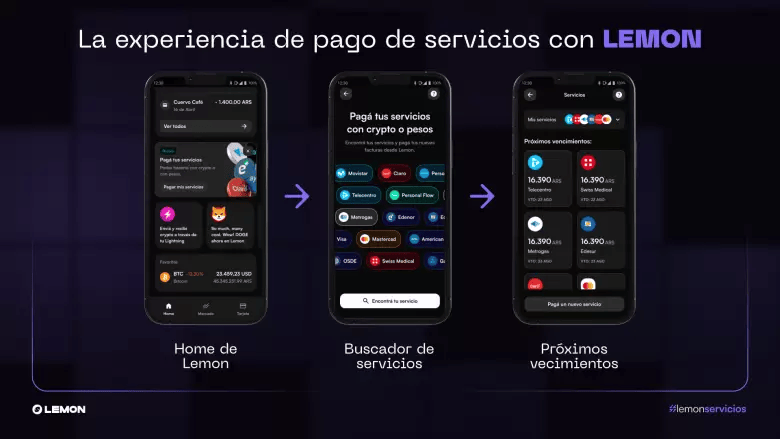 Lemon comenzará a ofrecer la vertical de pagos recurrentes a sus usuarios de Argentina. Ahora podrán pagar servicios con el saldo en cuenta en pesos o criptomonedas de una manera sencilla y rápida. Más de 4000 servicios estarán disponibles, incluyendo facturas de energía, agua, telefonía, internet, educación y diversos rubros.